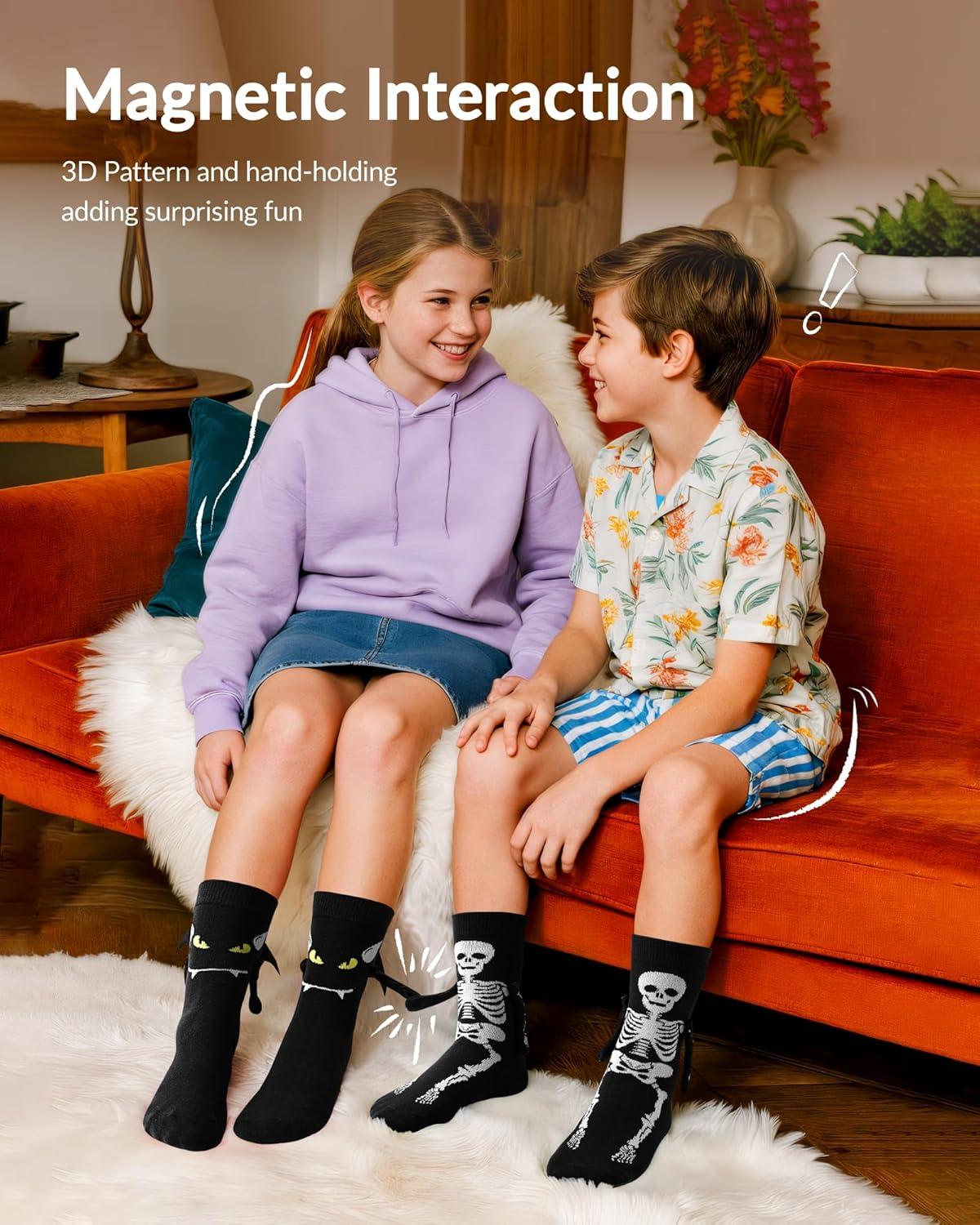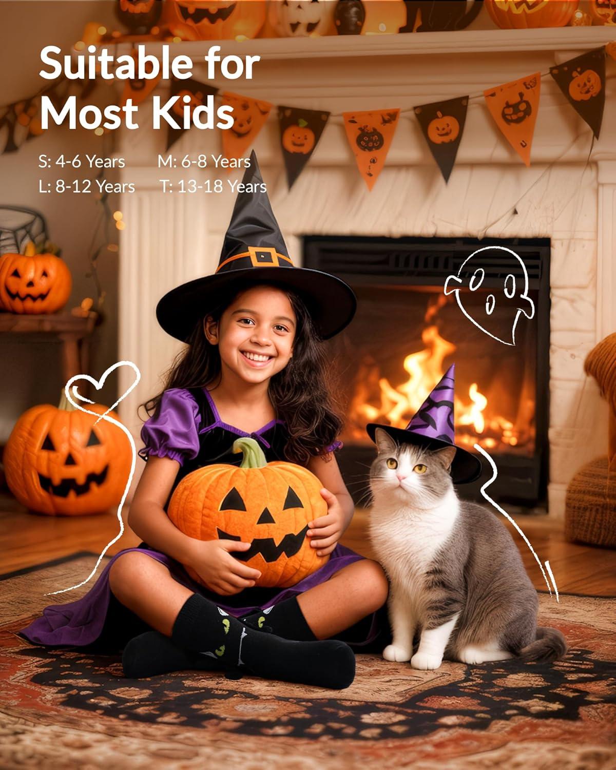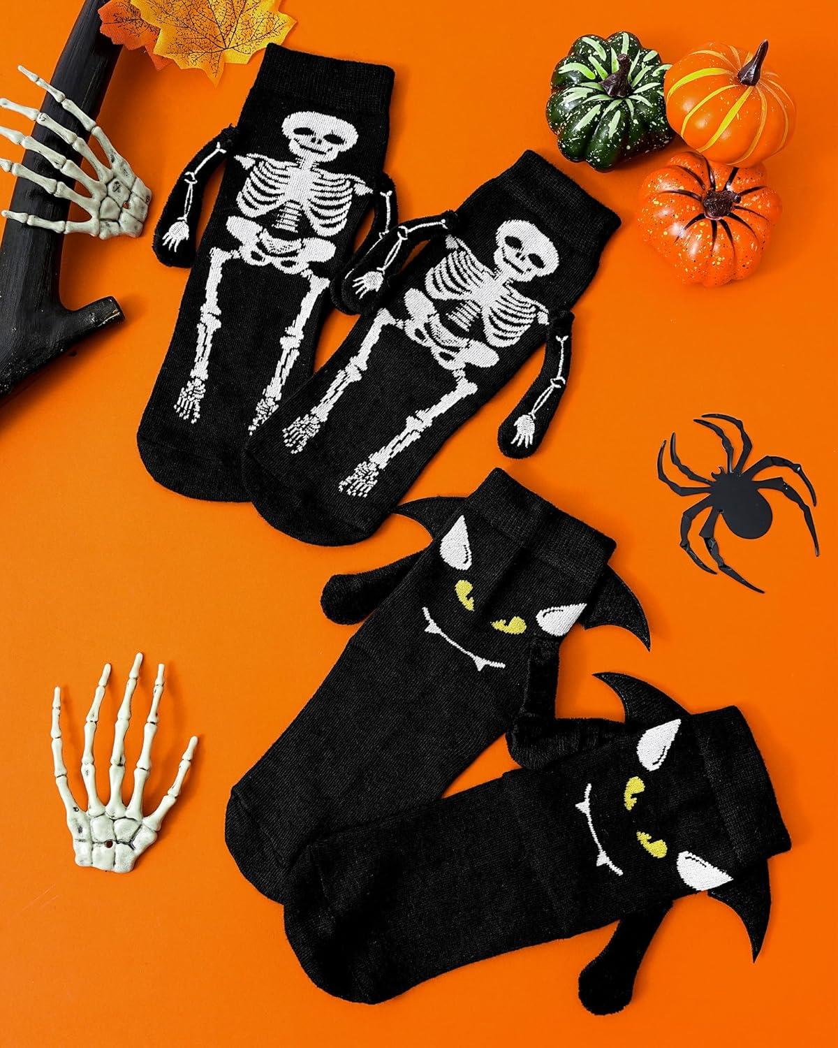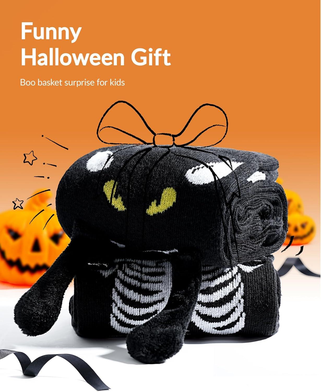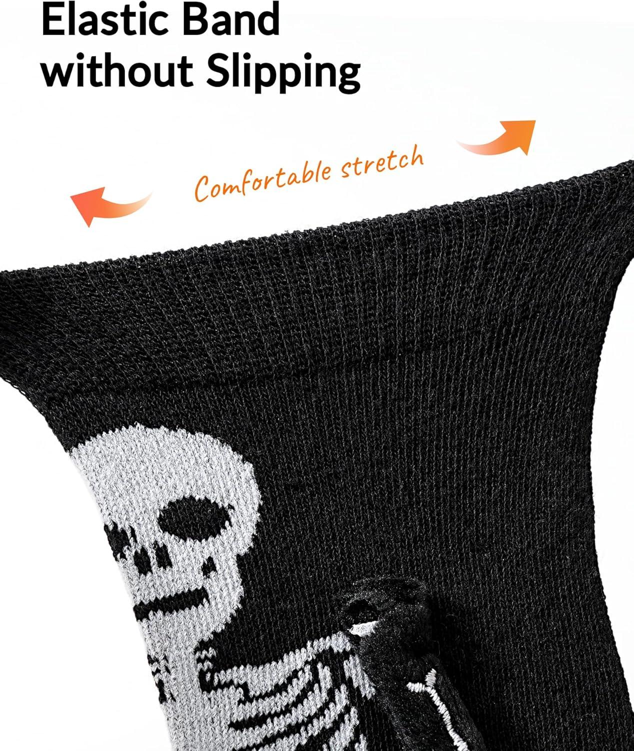 Moyel 2 Pairs Funny 3D Halloween Socks Kids Halloween Gifts for Boys Girls Skeleton Socks Cute Party Favors Basket Stuffers(Black 3d)