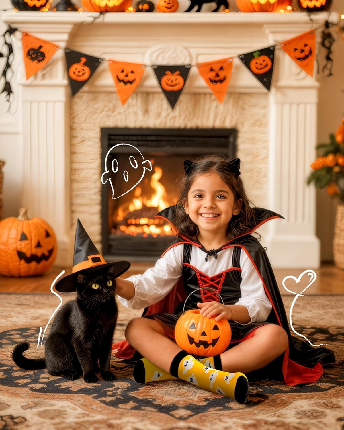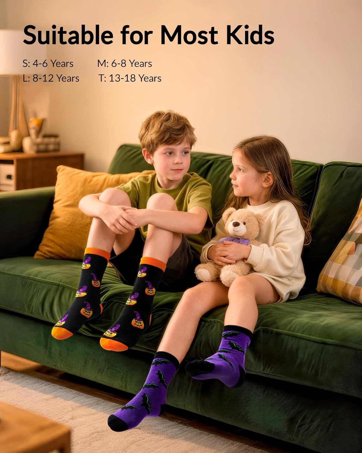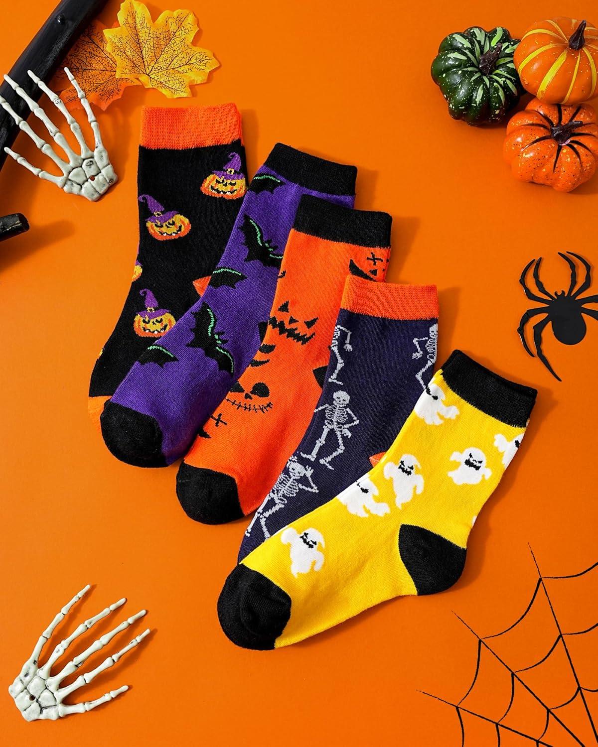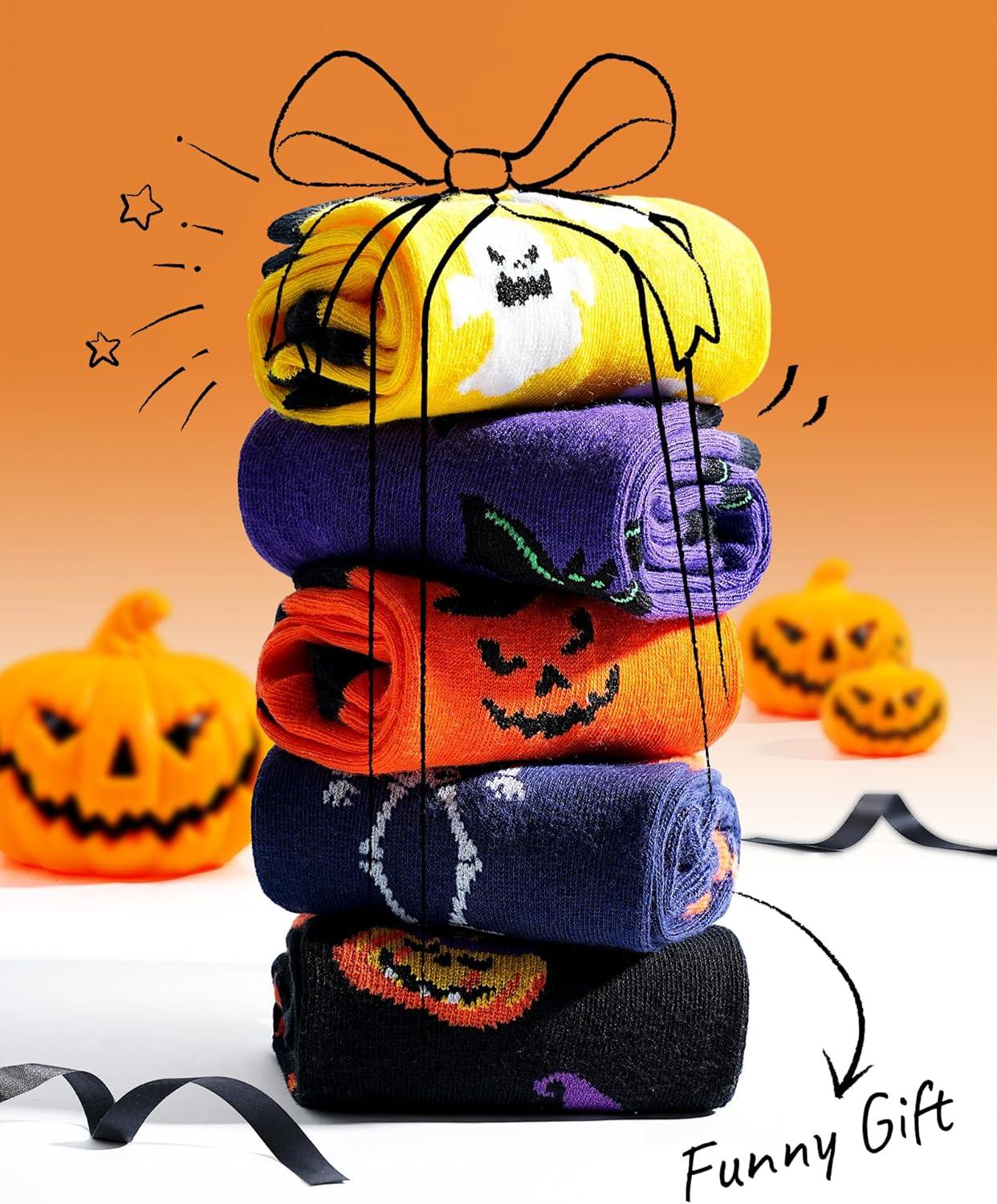 Moyel 5 Pairs Halloween Socks Kids Funny Halloween Gifts for Boys Girls Cute Boo Basket Stuffers for Kids Fun Party Favors(Multicolor Cotton-5 Pairs)