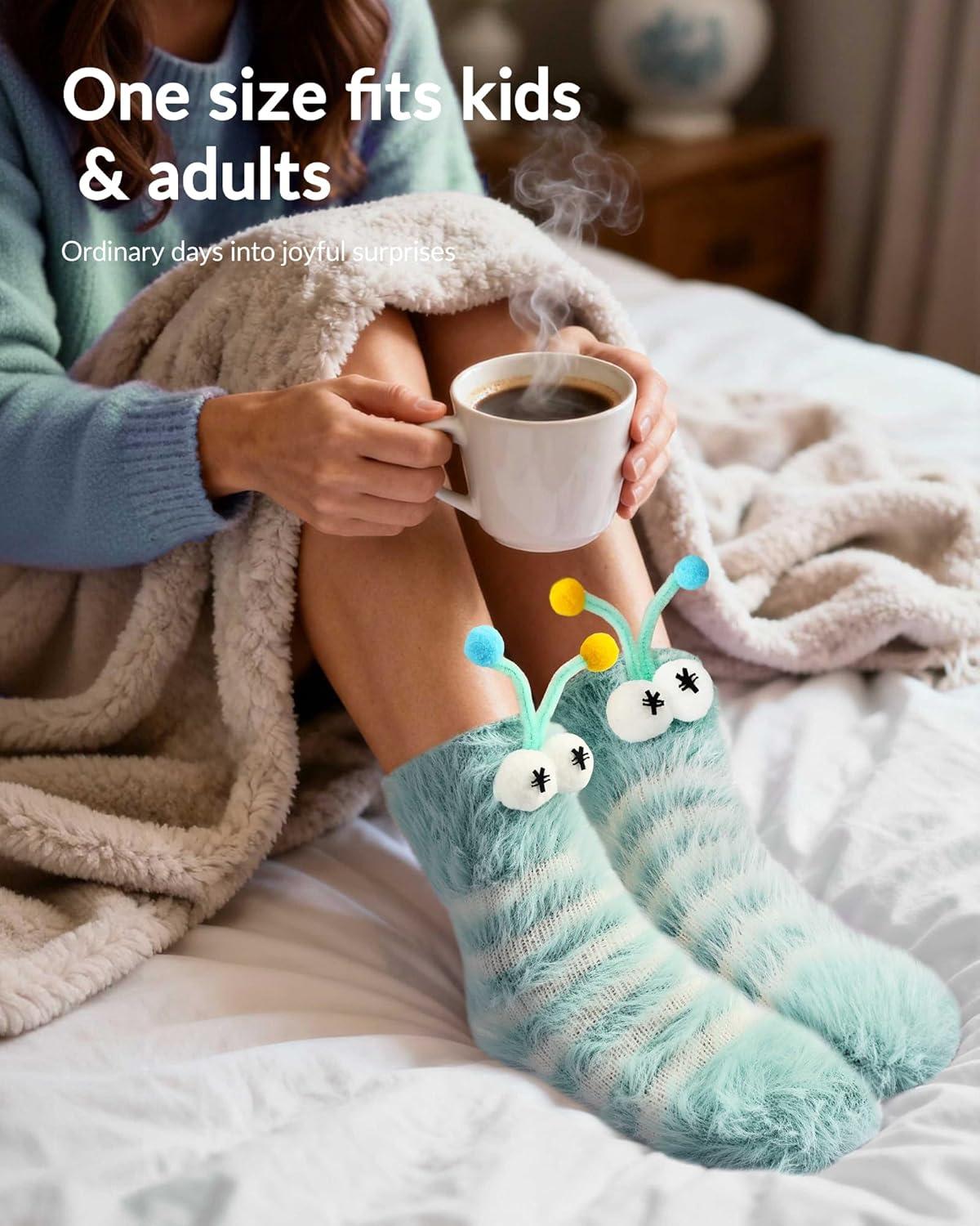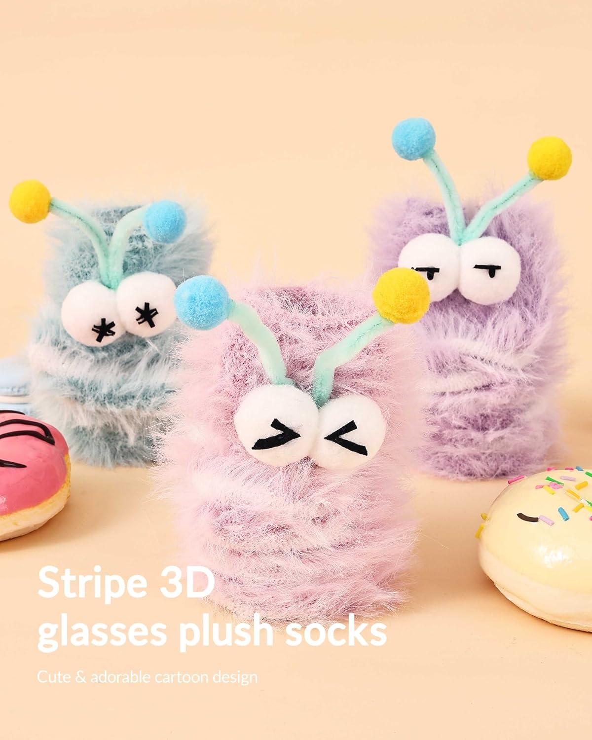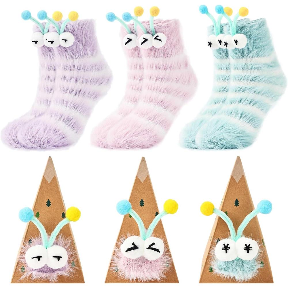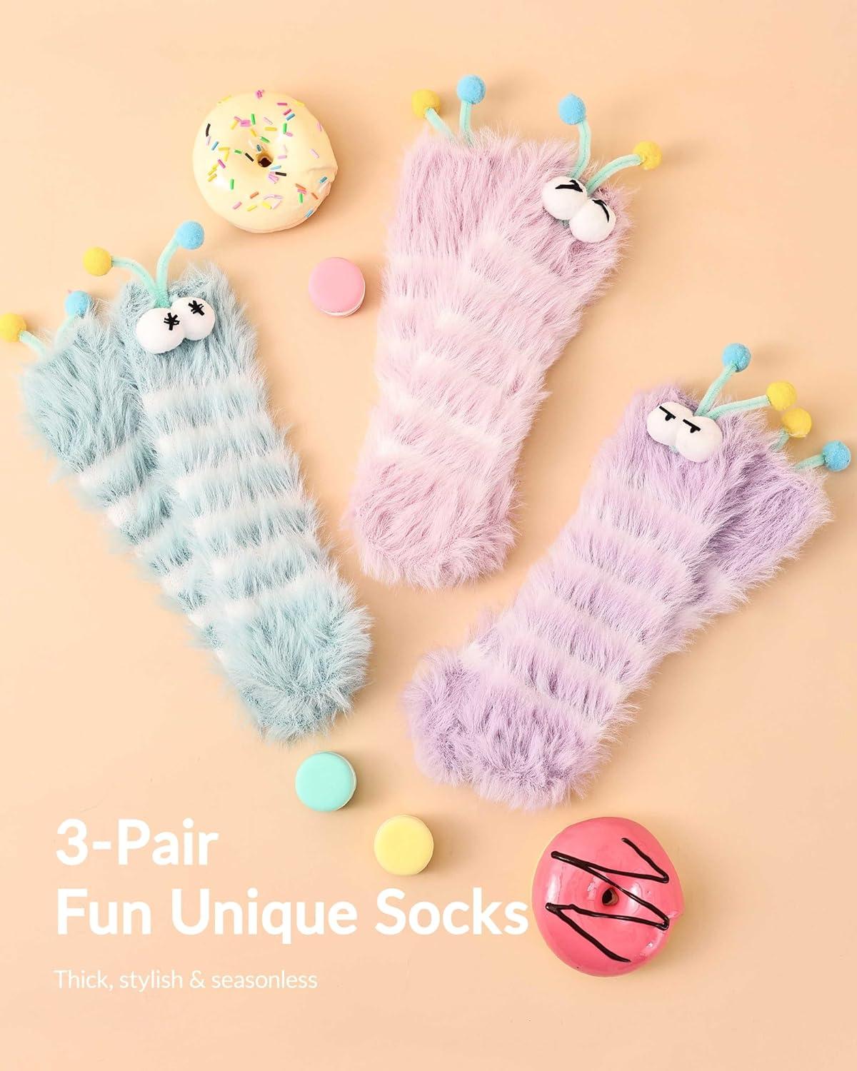 Moyel Crazy Funny Socks For Women Cartoon 3 Pair 3D Novelty Winter Warm Thick Plush Fuzzy Sock Birthday Novelty Christmas Gifts for Her