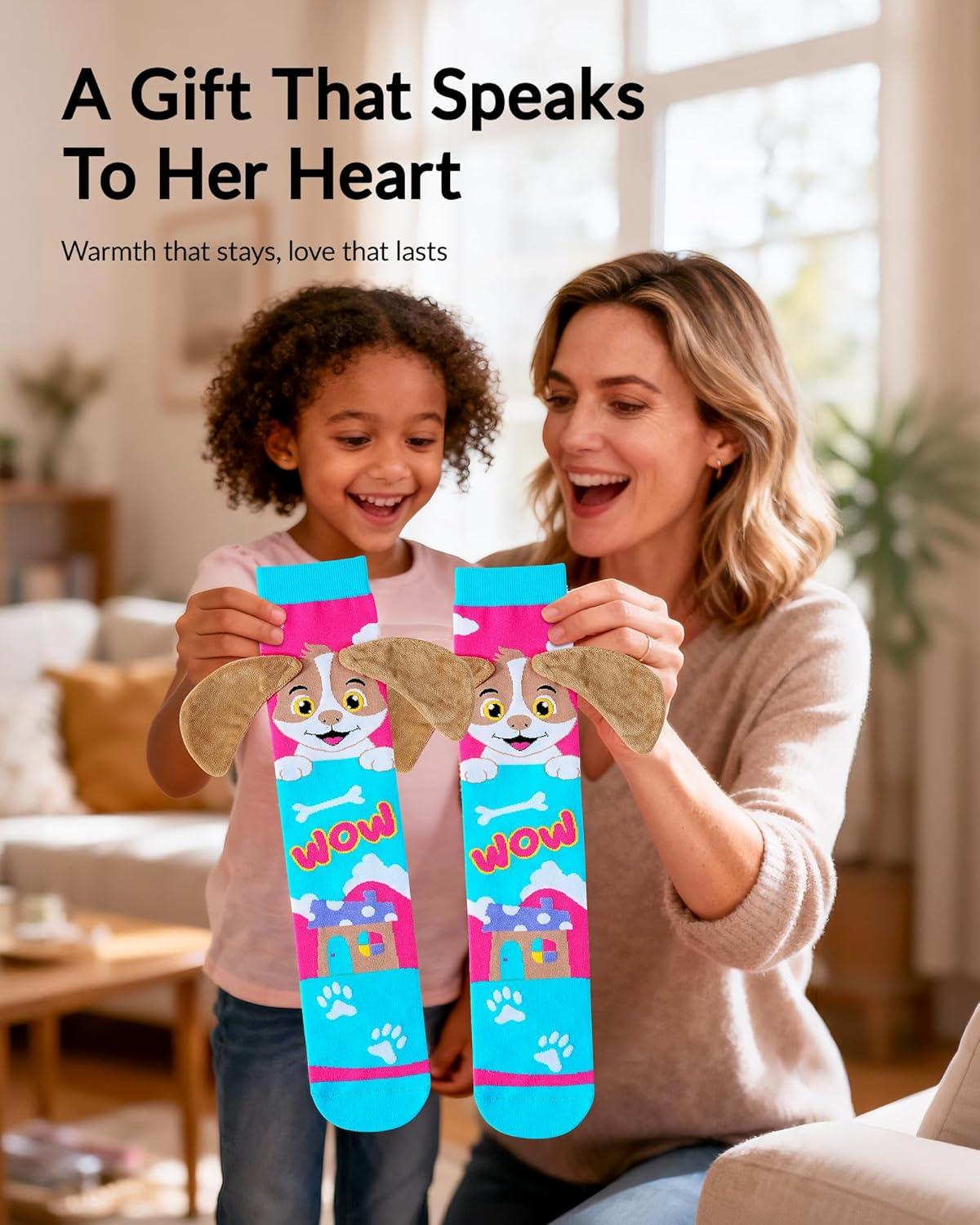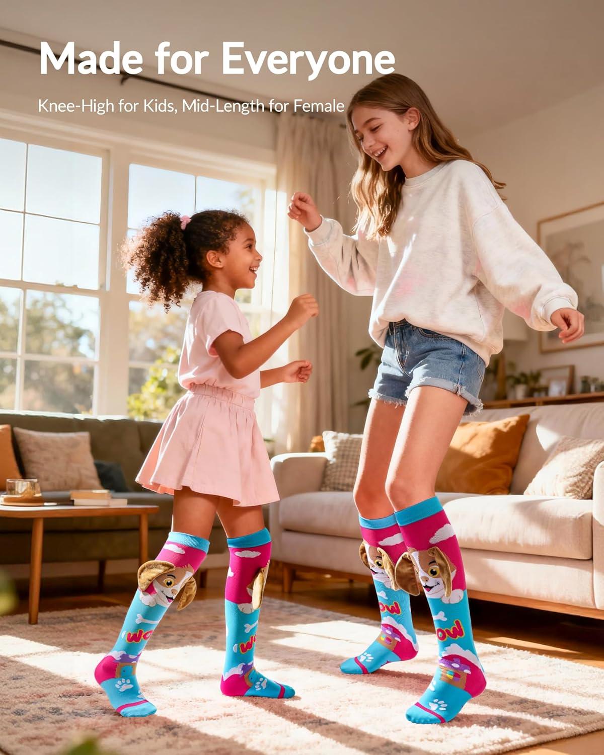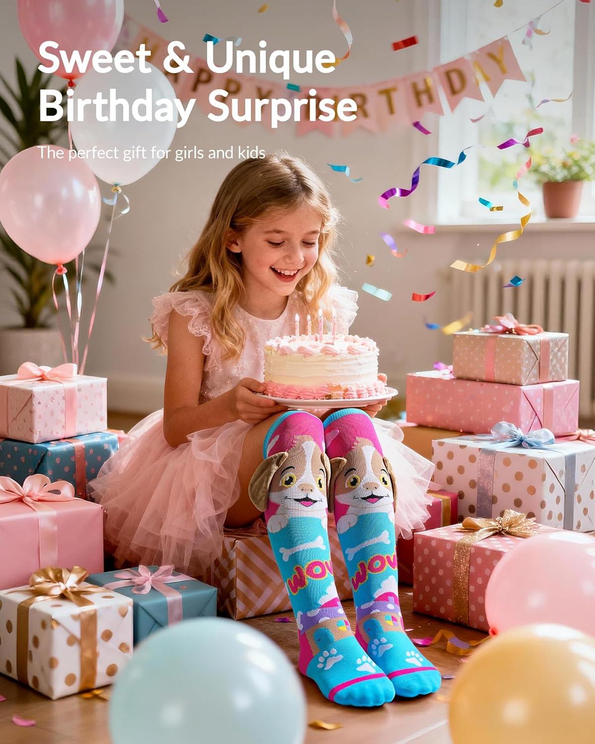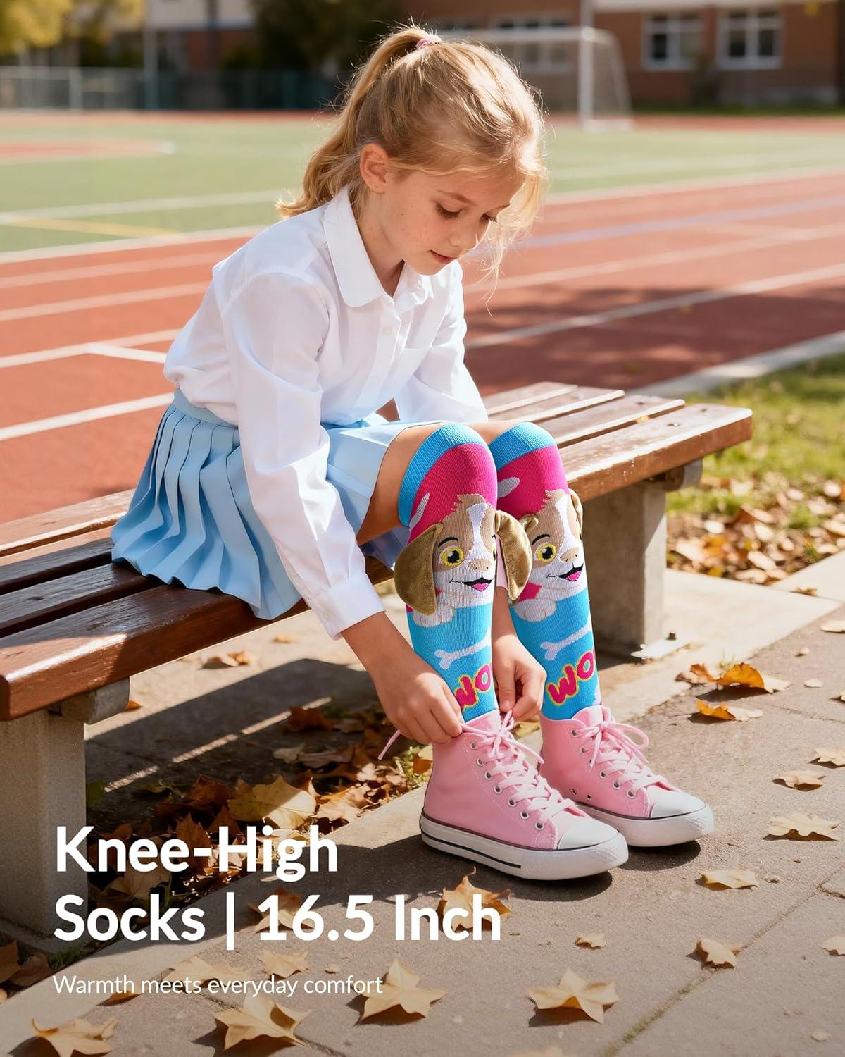 Moyel Crazy Socks for Kids Girls Animal Knee High Silly Funny Style Wacky Novelty Fun Dog Gifts Sock with Cute Decoration