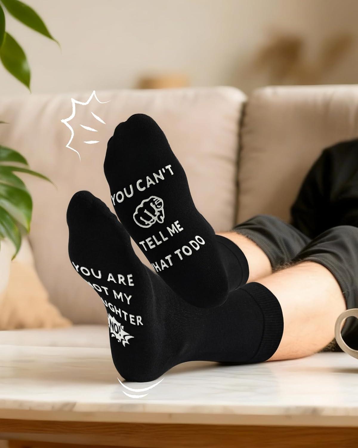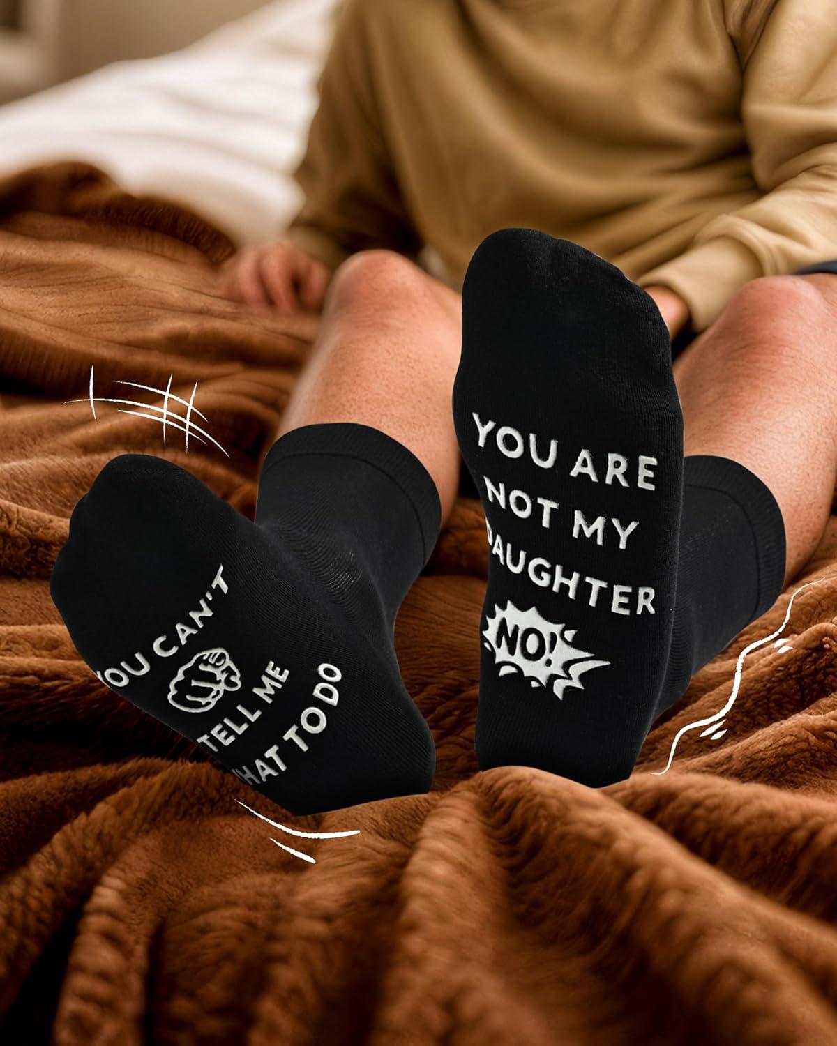 Moyel Dad Gifts from Daughter Son Cool Gifts for Dad Christmas Dad Birthday Gifts Gift Ideas Funny Socks(Black Not My Daughter)