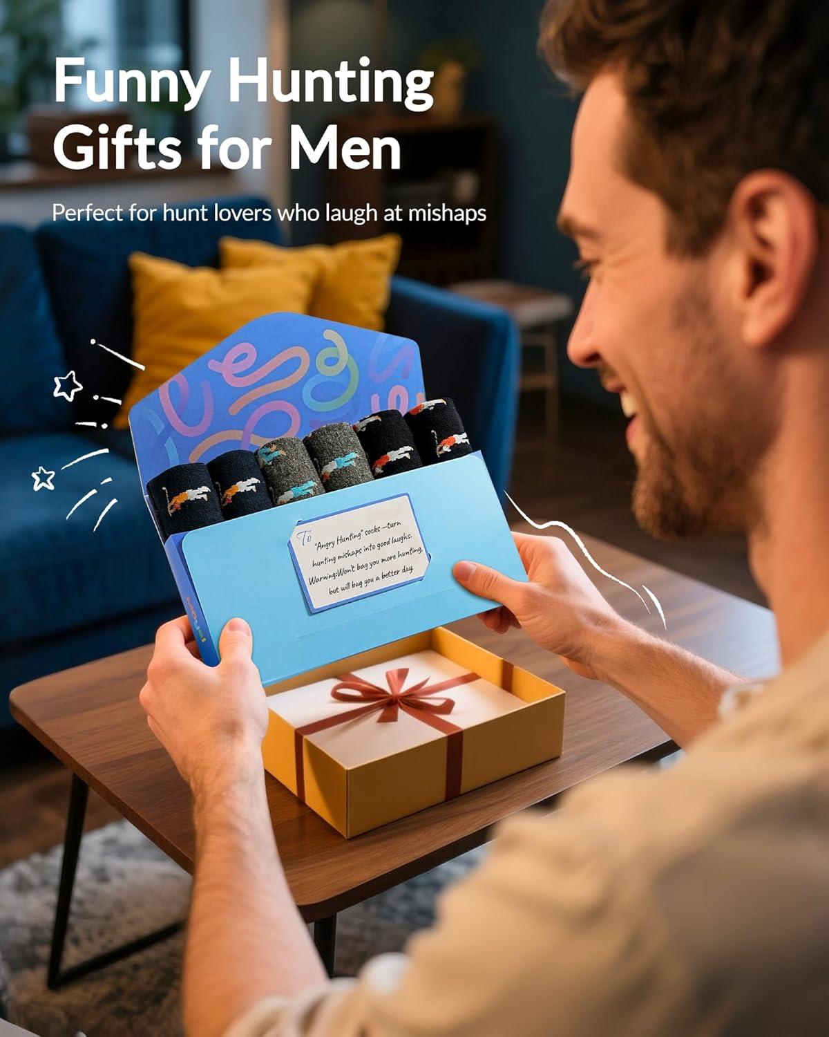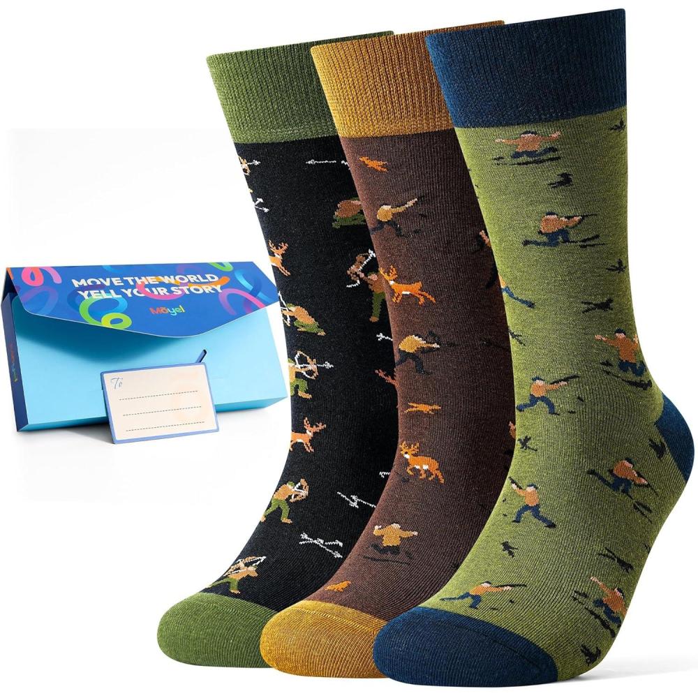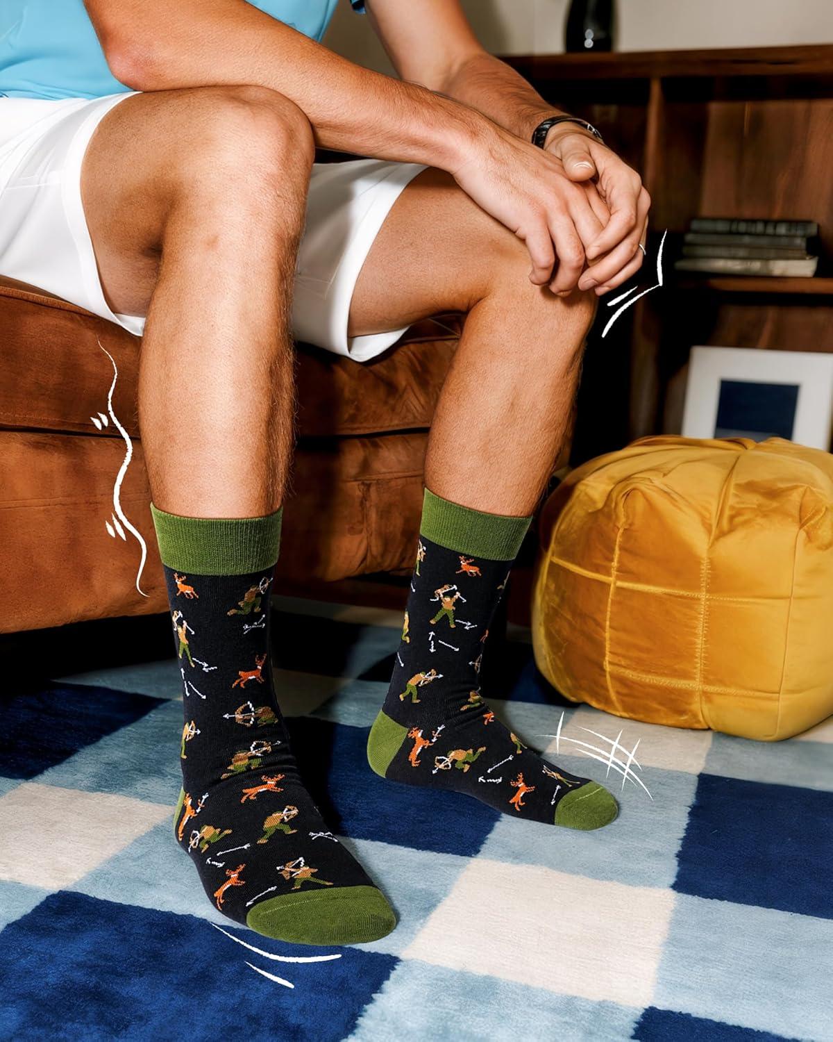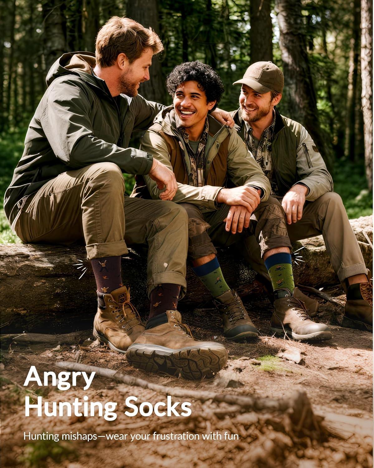 Moyel Funny Novelty Socks for Men Fun Golf Pickleball Socks Fun Gifts for Him Men Accessories(Multicolor Angry Hunting)