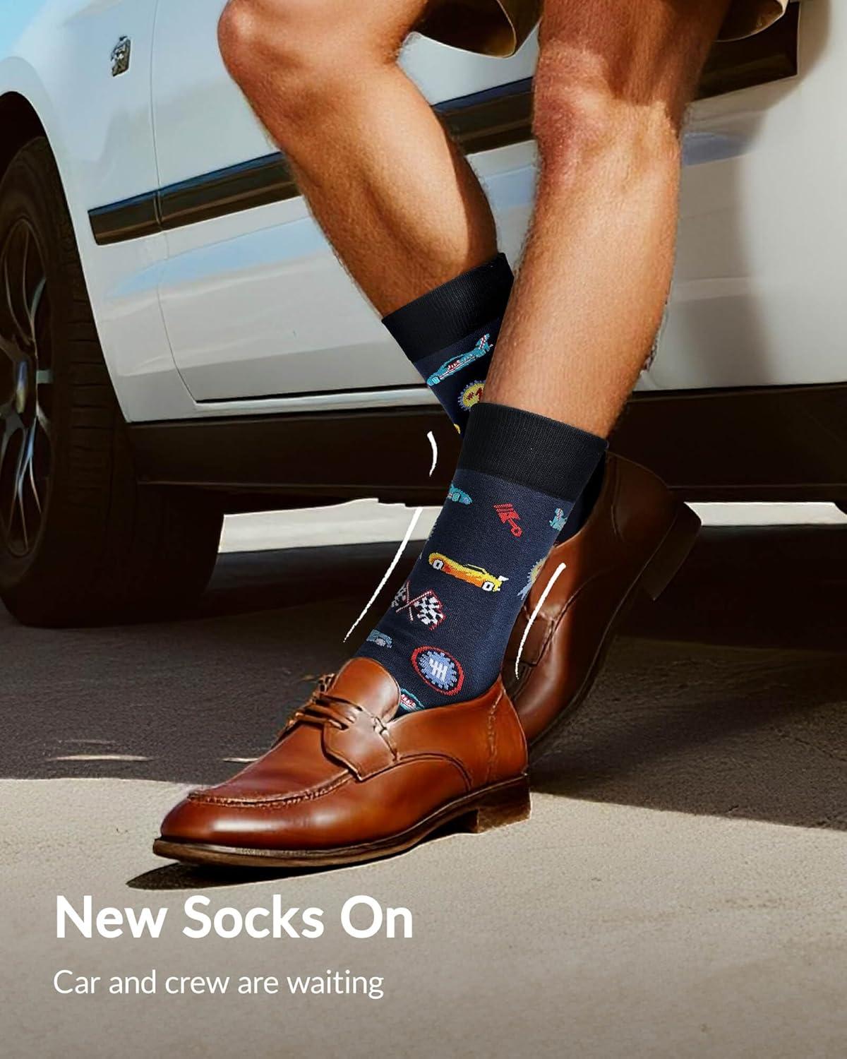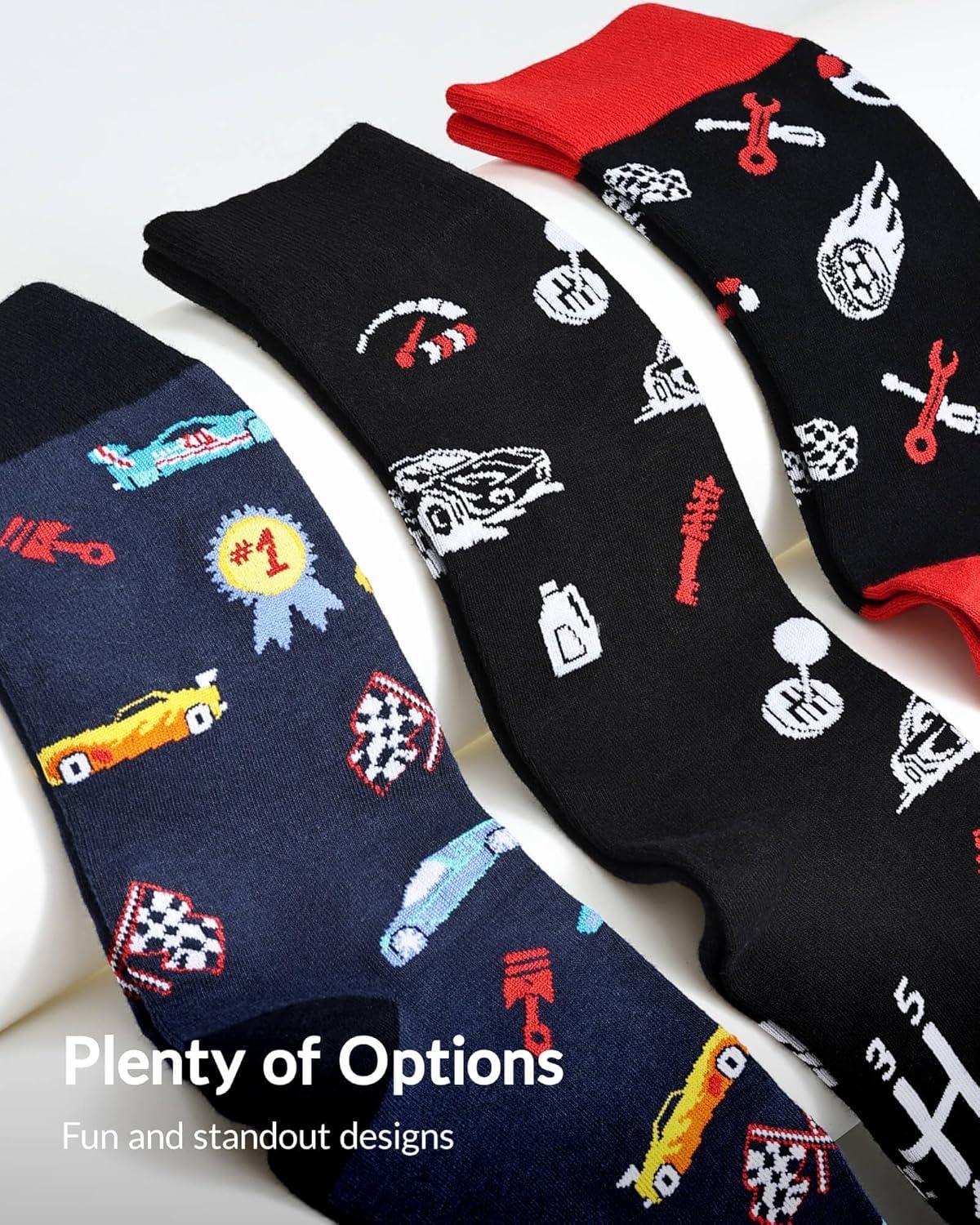 Moyel Funny Novelty Socks for Men Fun Golf Pickleball Socks Fun Gifts for Him Men Accessories(Multicolor- Car)