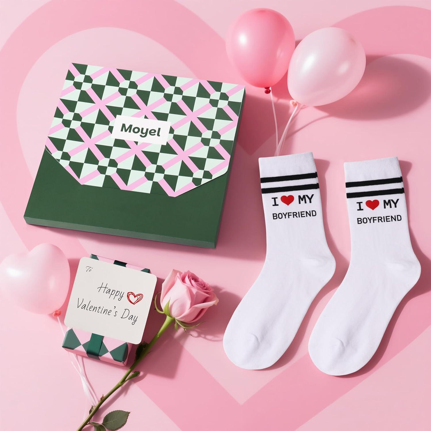 Moyel Husband Boyfriend Gift Ideas Funny Cool Socks for Men, Romantic Gifts for Anniversary, Valentine’s Day, Birthday(White-girlfriend)
