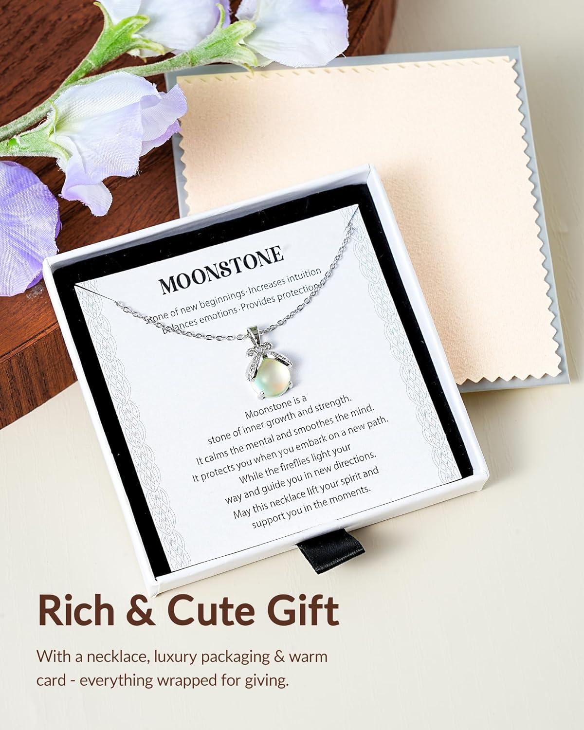 Moyel Moonstone Necklace Firefly Moonstone Jewelry for Women Birthstone Pendant Necklace Inspirational Gift for Women New Beginnings Graduation and Retirement Gift