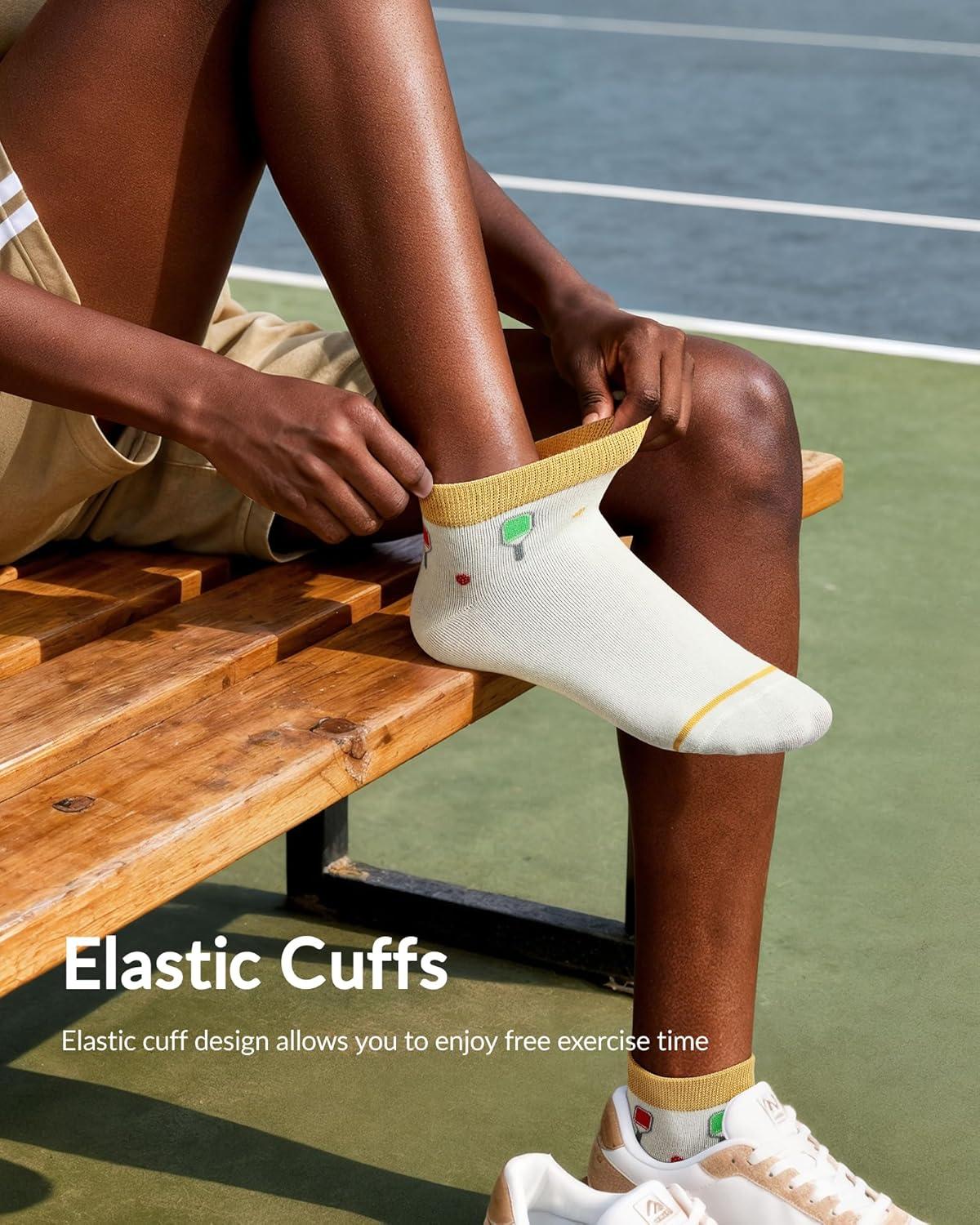 Moyel Pickleball Gifts for Women 5 Pairs Funny Cute Pickleball Ankle Socks Size 5-8 Novelty Crazy Womens Socks Accessories(White-pickleball)