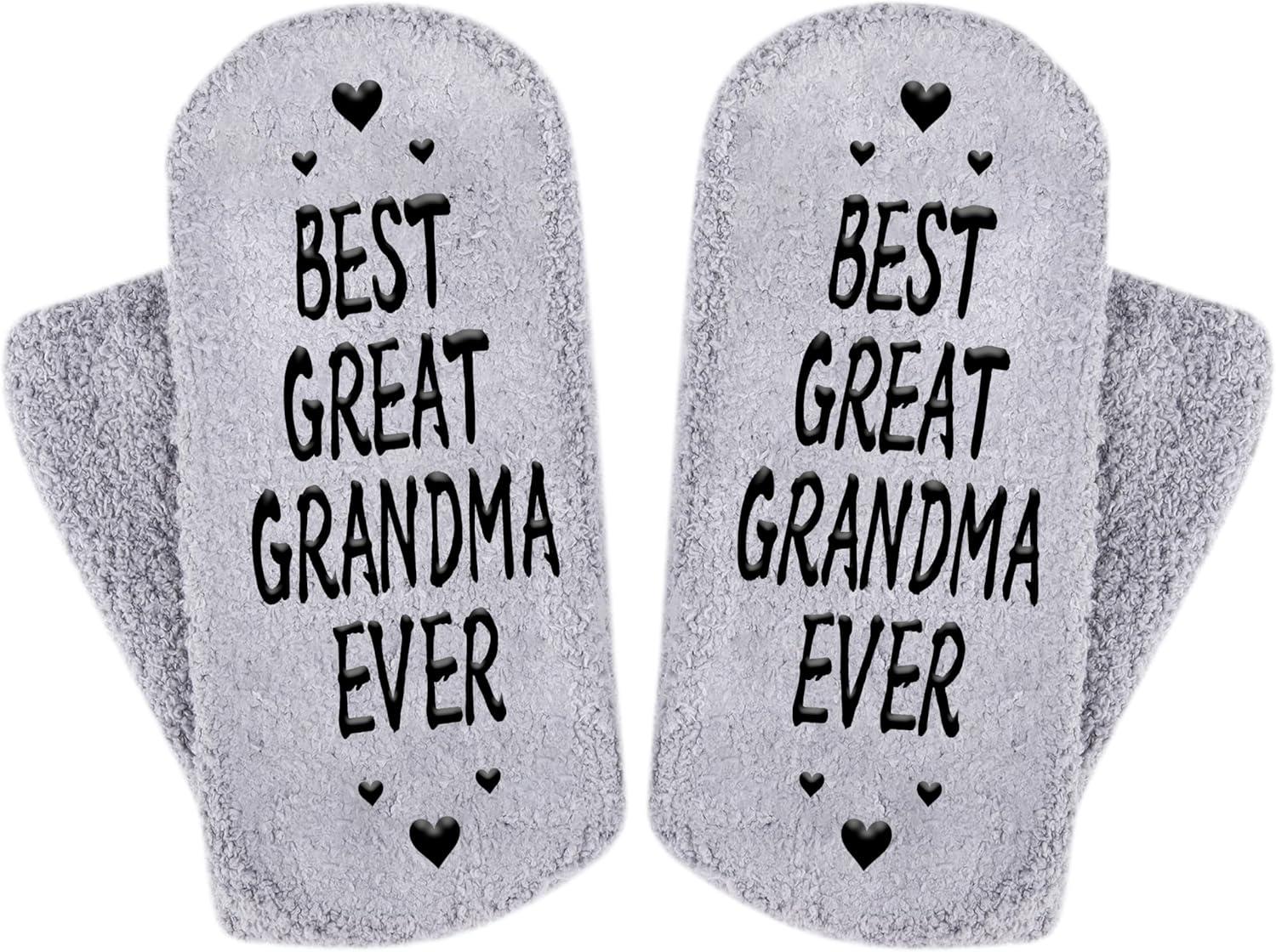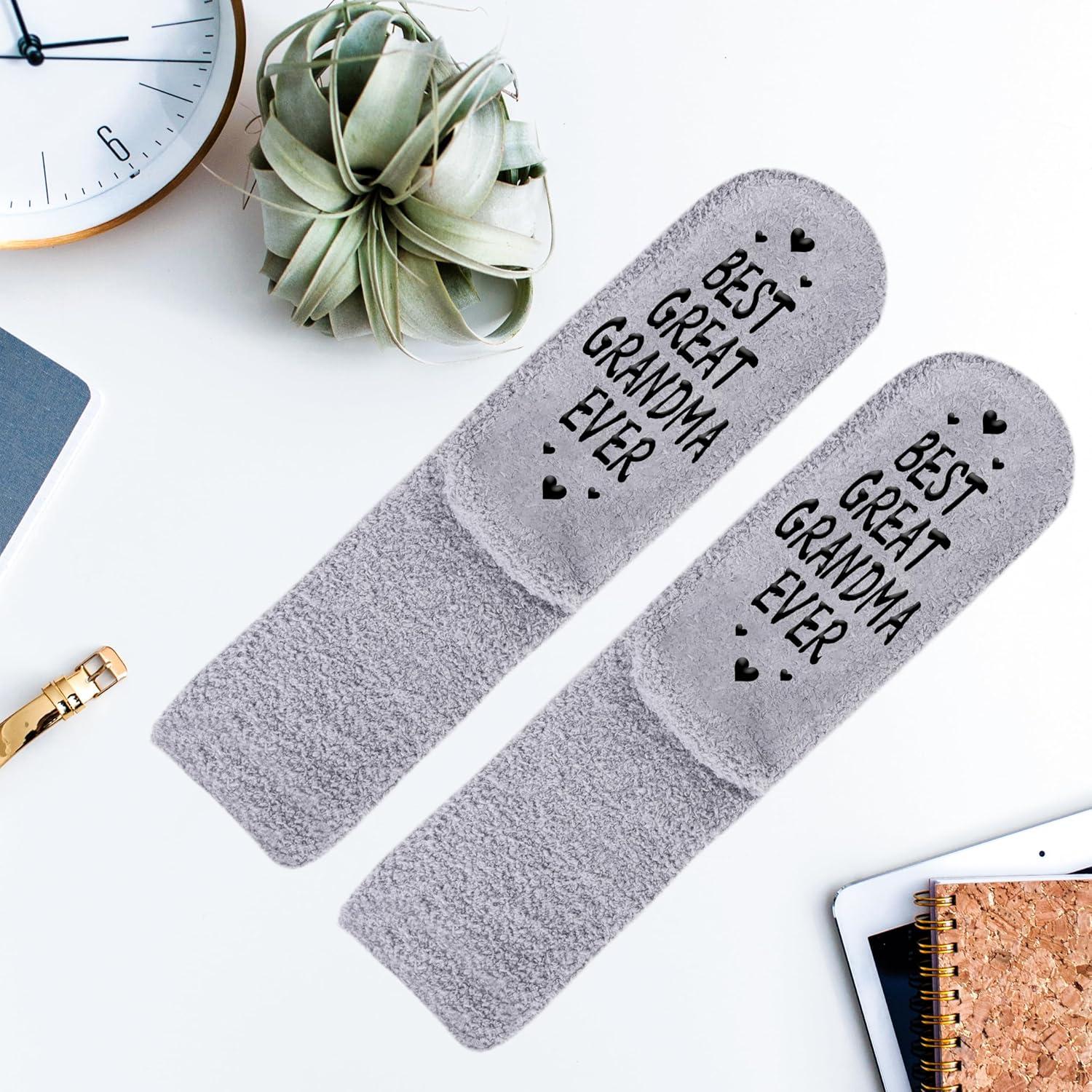 Moyel Women Reading Socks Book Lovers Gifts Fluffy Fuzzy Slipper Warm Cozy Socks(Grey Great Grandma)