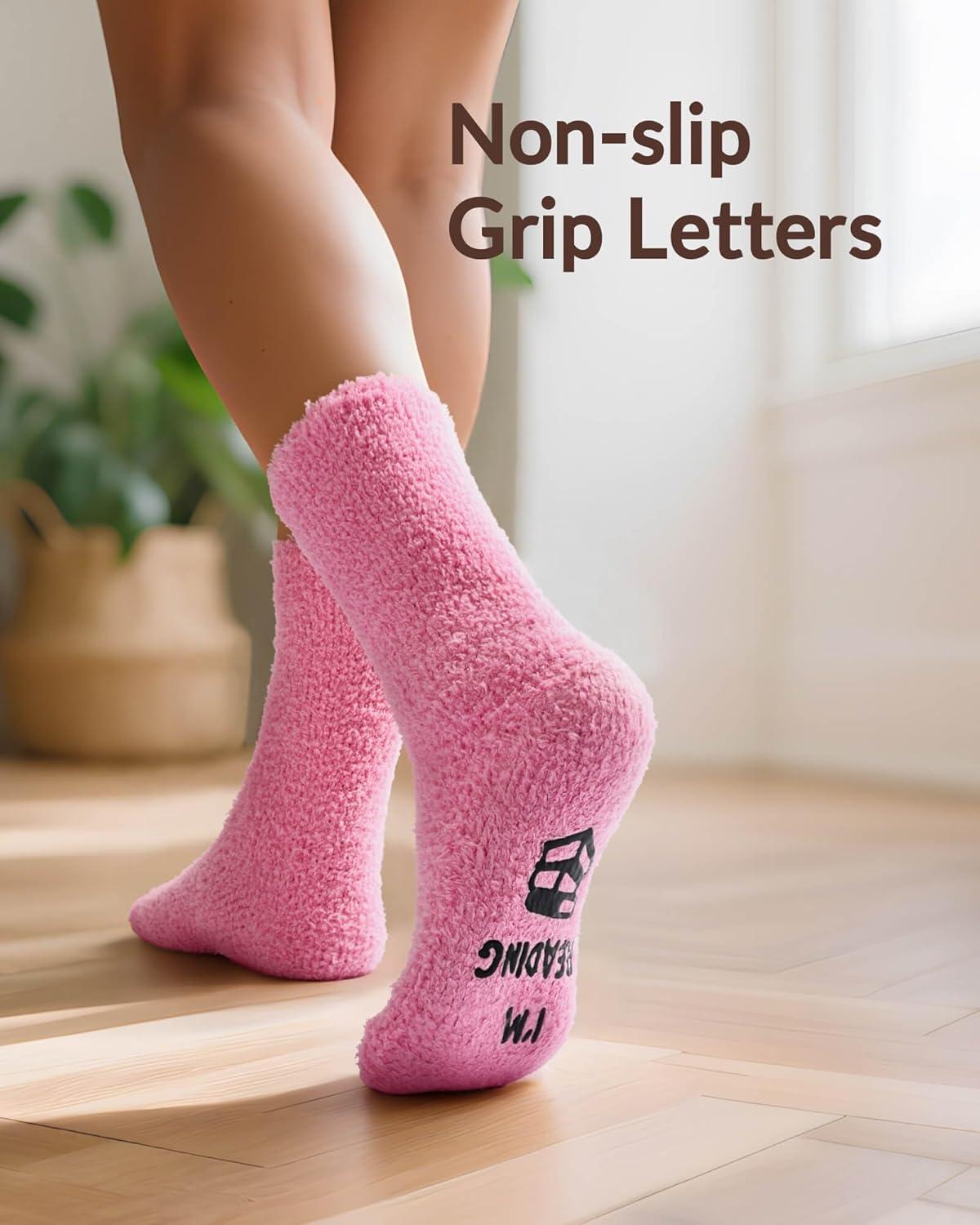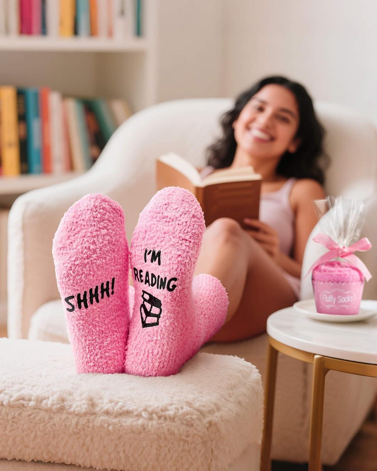 Moyel Women Reading Socks Book Lovers Gifts Fluffy Fuzzy Slipper Warm Cozy Socks(Reading)